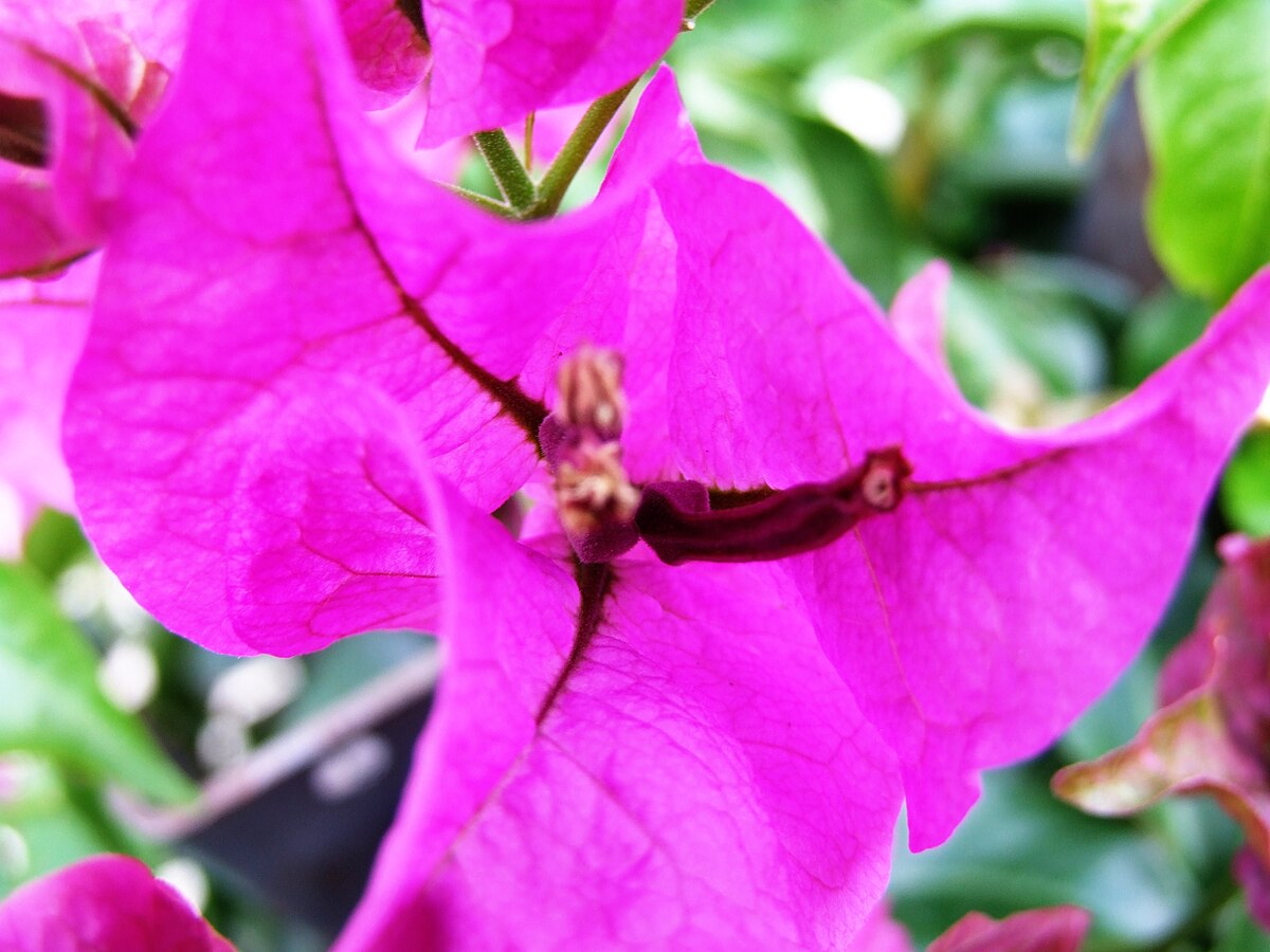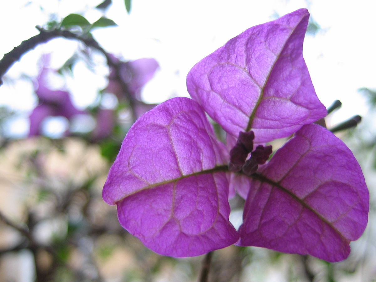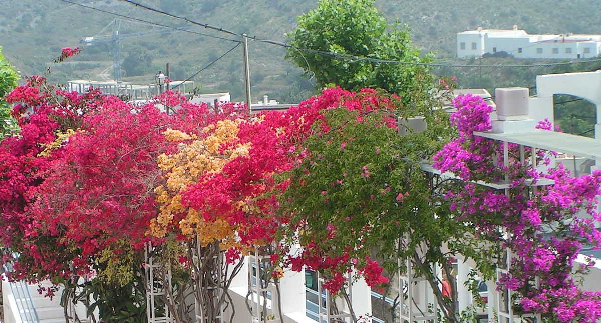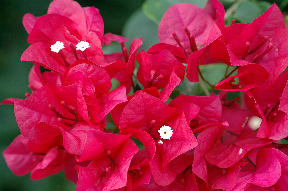 Les bougainvillées sont des arbustes épineux grimpants aux vives couleurs qui contrairement à l'apparence ne sont pas dues aux fleurs. Celles-ci sont petites et blanches, et ce sont les bractées de l'extrémité des rameaux qui les entourent qui offrent des coloris variés rose, rouge, mauve, orange, jaune, blancs.