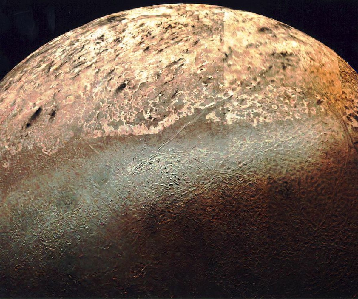 Ce type de formations sur Triton rappelle beaucoup celles observées sur le satellite Encelade de Saturne, notamment les fameuses « rayures de tigre » des régions polaires australes d'Encelade.