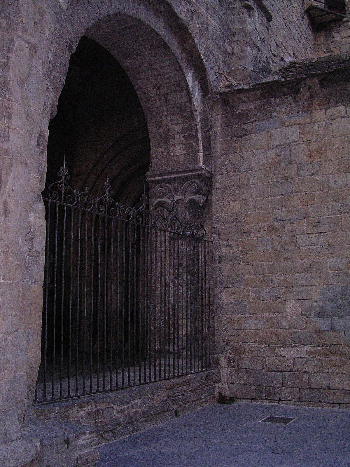 Dans la façade frontale de la cathédrale, on trouve l'atrium et le portail, dont l'arc majeur de rayon semicirculaire, correspond au vaisseau central de l'édifice. La façade sud comprend un autre portique avec arc plein-cintre et un tympan modifié à la Renaissance. Quant aux absides, on ne conserve de l'époque romane que celle du sud, étant donné que les absides centre et nord ont été reconstruites à la fin du XVIIIe siècle.