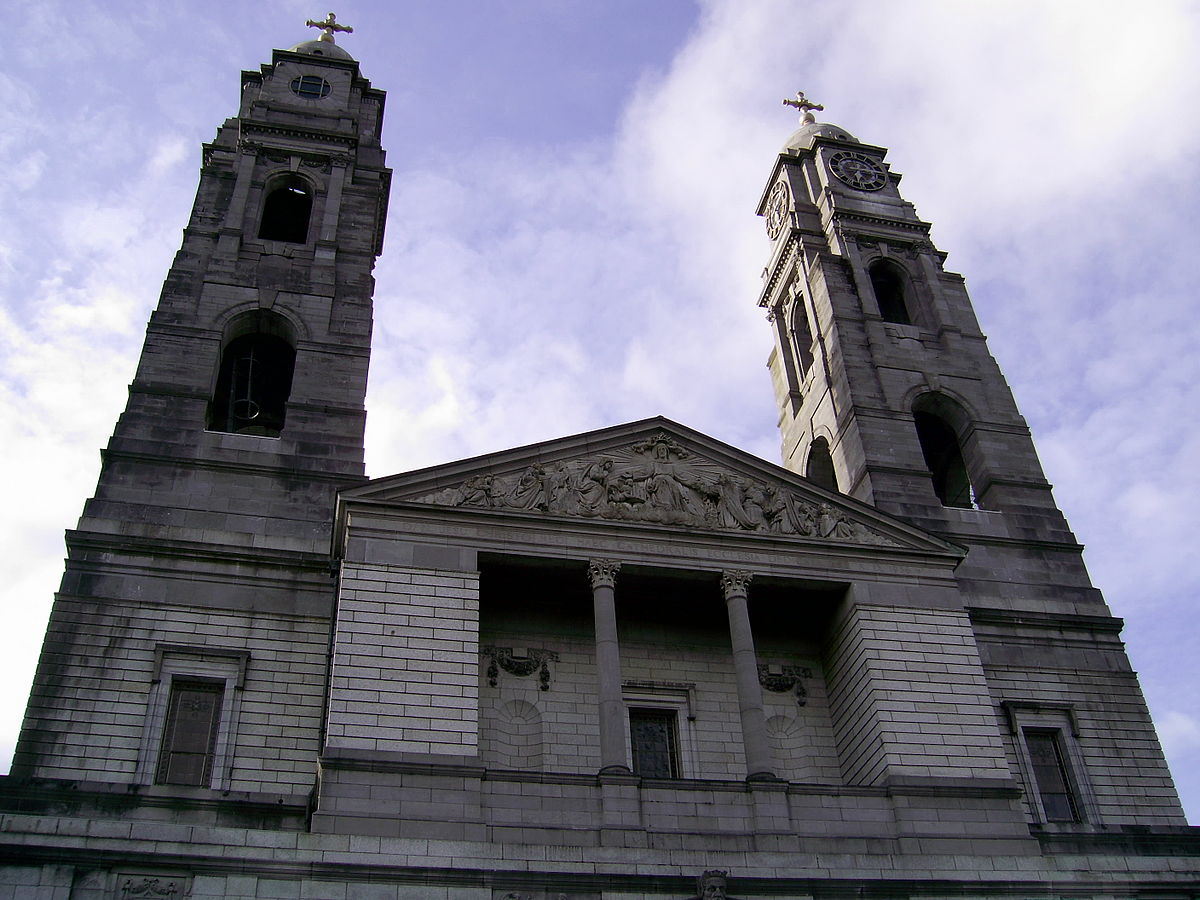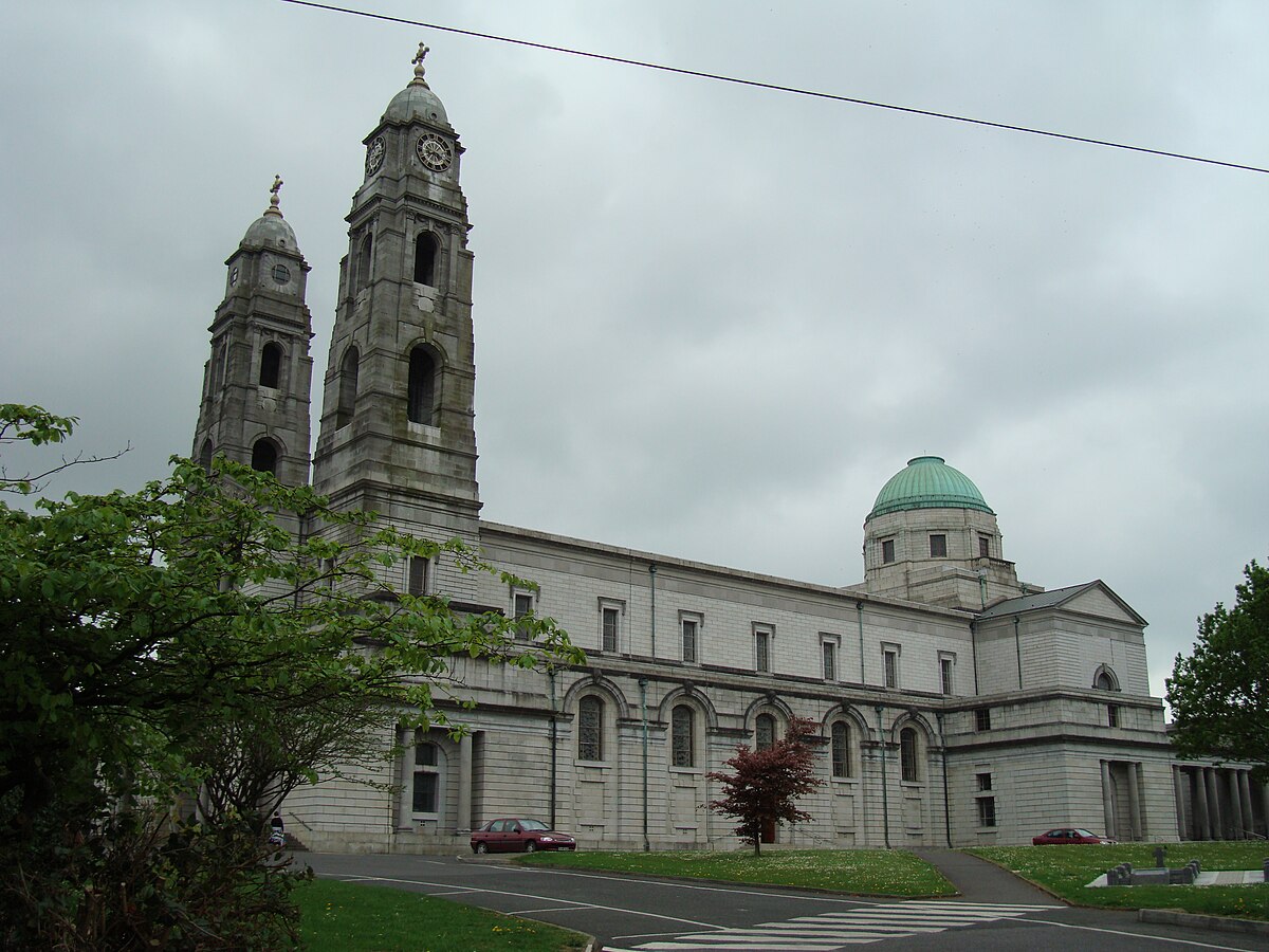 William Byrne & Sons, de Dublin, conçoivent l’édifice comme une basilique de style renaissance. Ces tours jumelles caractéristiques, surmontées de croix de bronze, s’élèvent à environ 55 mètres. Elle est prévue pour pouvoir accueillir 5 000 personnes.