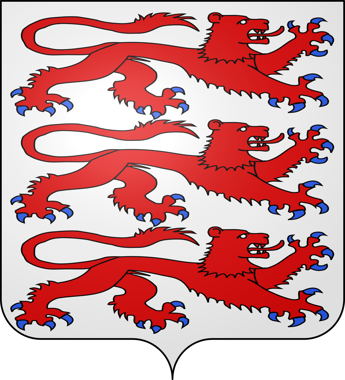 Famille de Mac-Mahon : D'argent, à trois lions léopardés et contournés de gueules, armés et lampassés d'azur, l'un sur l'autre.