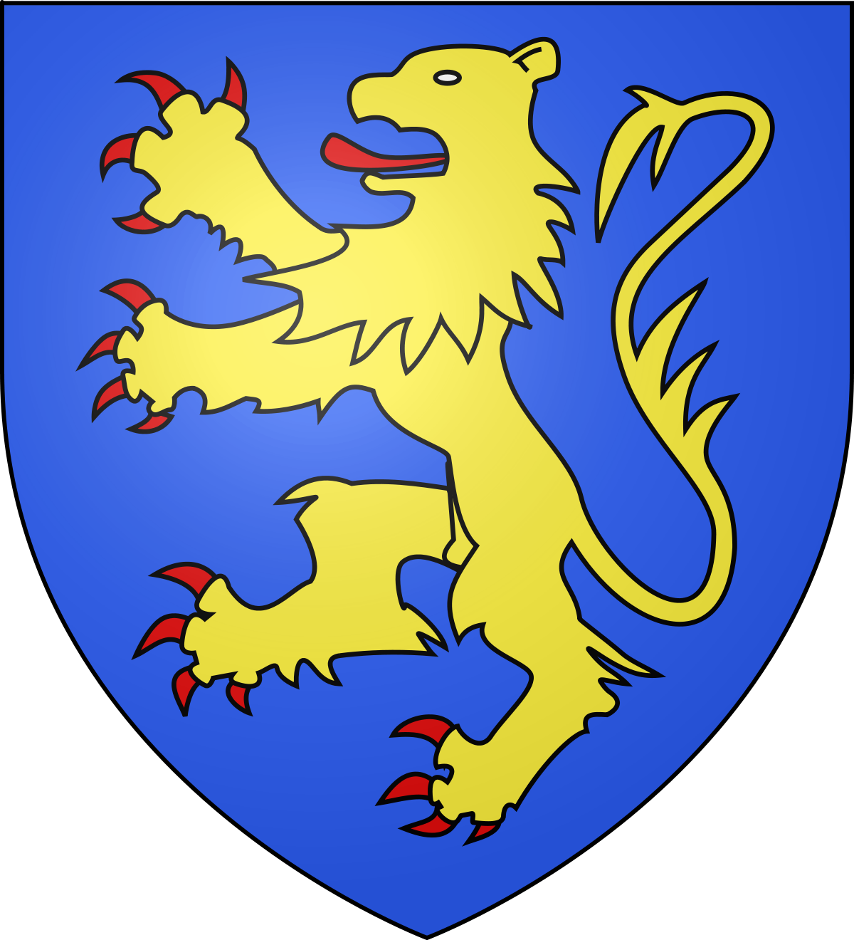 Famille de Saulx-Tavannes : D'azur à un lion d'or armé et lampassé de gueules.