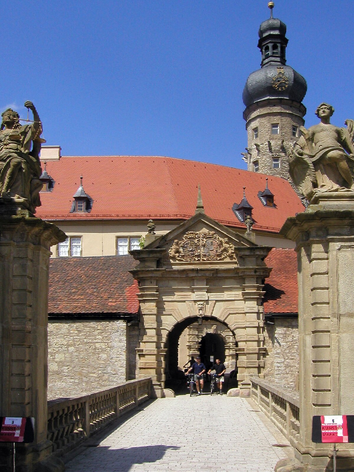 Le château est agrandi, ceint de remparts et aménagé au cours des siècles. Le comte Wolfgang II de Hohenlohe-Langenbourg entre en possession des terres et du château en 1586, après partages et extinction de la branche Weikersheim. Il en fait sa résidence principale et remanie le château en style Renaissance. Cultivé et humaniste, le comte avait voyagé en Autriche, en France et en Angleterre et avait voulu faire de sa résidence, la demeure idéale de ses goûts et conceptions, avec des éléments annonçant le baroque. L'aménagement extérieur est achevé en 1605. La salle des chevaliers est particulièrement remarquable avec ses plafonds à caissons du wurtzbourgeois Balthasar Katzenberger. Le comte meurt à soixante-quatre ans en 1610 et a à peine le temps d'en apprécier le décor.