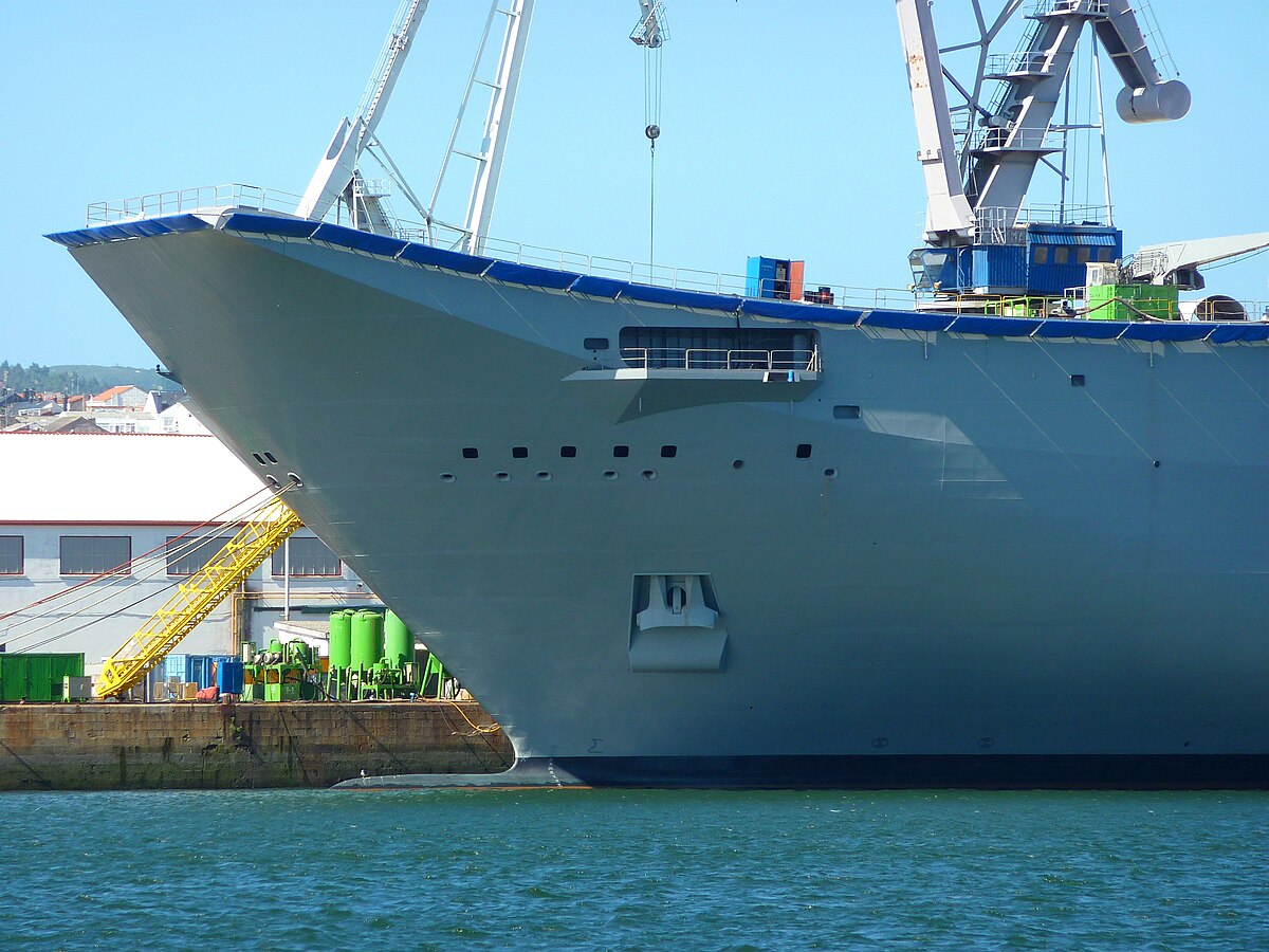 Le projet a été approuvé en septembre 2003 et la construction lancée aux chantiers de Navantia de Le Ferrol, à la Corogne. Long de 231 mètres pour un déplacement de 27 079 tonnes, il est un porte-aéronefs pour hélicoptères et avions à décollage court. Le navire a été nommé en l'honneur de Juan Carlos Ier, actuel roi d'Espagne.