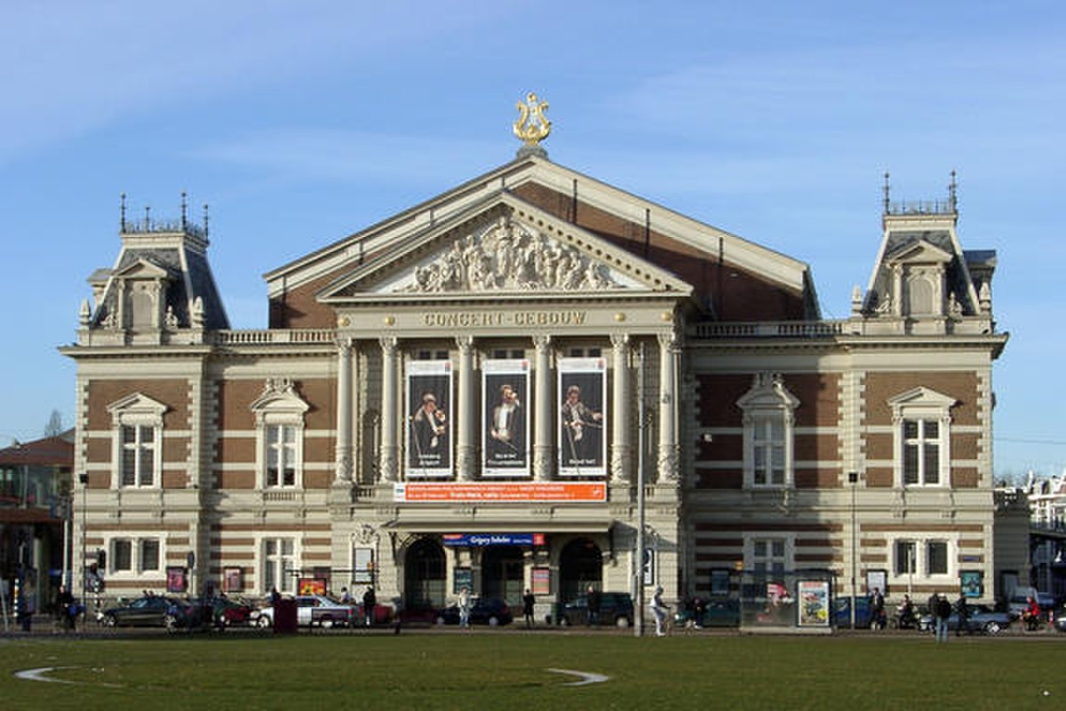 La décision de construire une grande salle de concert à Amsterdam est prise en 1881 par six citoyens notables de la ville. La cause invoquée est l’état désastreux de la vie musicale de la capitale des Pays-Bas, qui ne compte à l’époque que de petites salles, à l’acoustique très pauvre. Est alors choisi pour construire cette nouvelle salle l’architecte néerlandais le plus en vue à l'époque à Amsterdam : Adolf Leonard (Dolf) van Gendt. Celui s’inspire du Neue Gewandhaus de Leipzig (construit deux ans auparavant mais détruit en 1943) pour dessiner un bâtiment dans le style néoclassique. La construction commence en 1883, dans un pré situé bien au-delà de ce qui étaient alors les limites de la ville. Deux mille cent quatre-vingt-six piliers de douze à trente mètres de profondeur sont implantés dans le sol, qui, sableux, ne se prédisposait pas à une telle construction. Celle-ci s’achève en 1886 mais la salle est contrainte de rester fermée pendant deux ans, pour cause de querelles incessantes entre les commanditaires et le conseil de la ville qui ne s’entendent pas, notamment sur la construction des routes d’accès et sur l’éclairage public à apporter à celles-ci.
