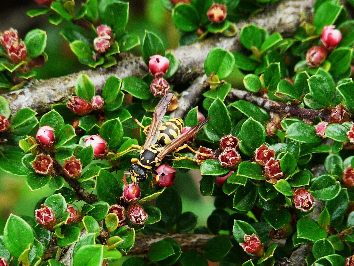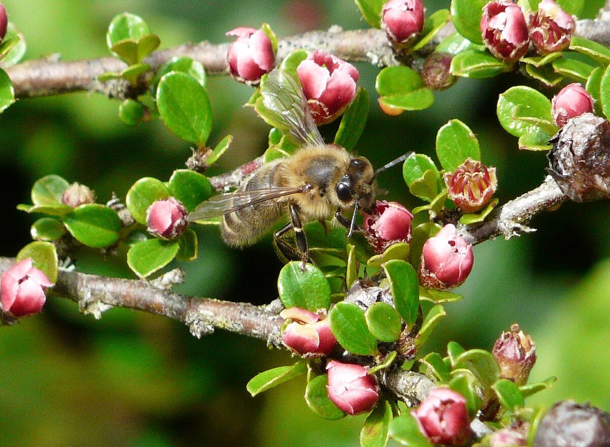 Au printemps, l'arbuste est recouvert d'une multitude de petits boutons de fleurs rose foncé ou rouges, mellifères, qui attirent en nombre papillons, guêpes, bourdons et surtout abeilles.