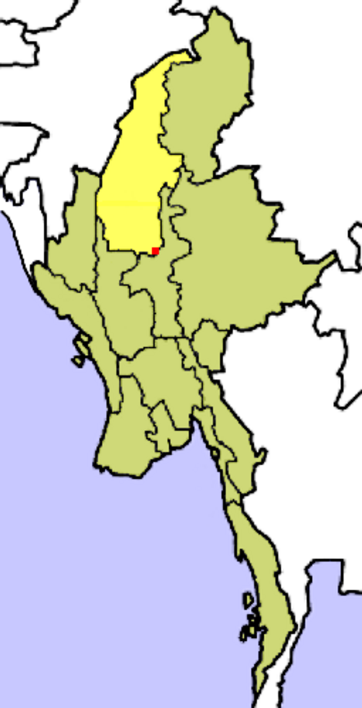 | Localisation de la division de Sagaing (en jaune) à l'intérieur de la Birmanie. | |
