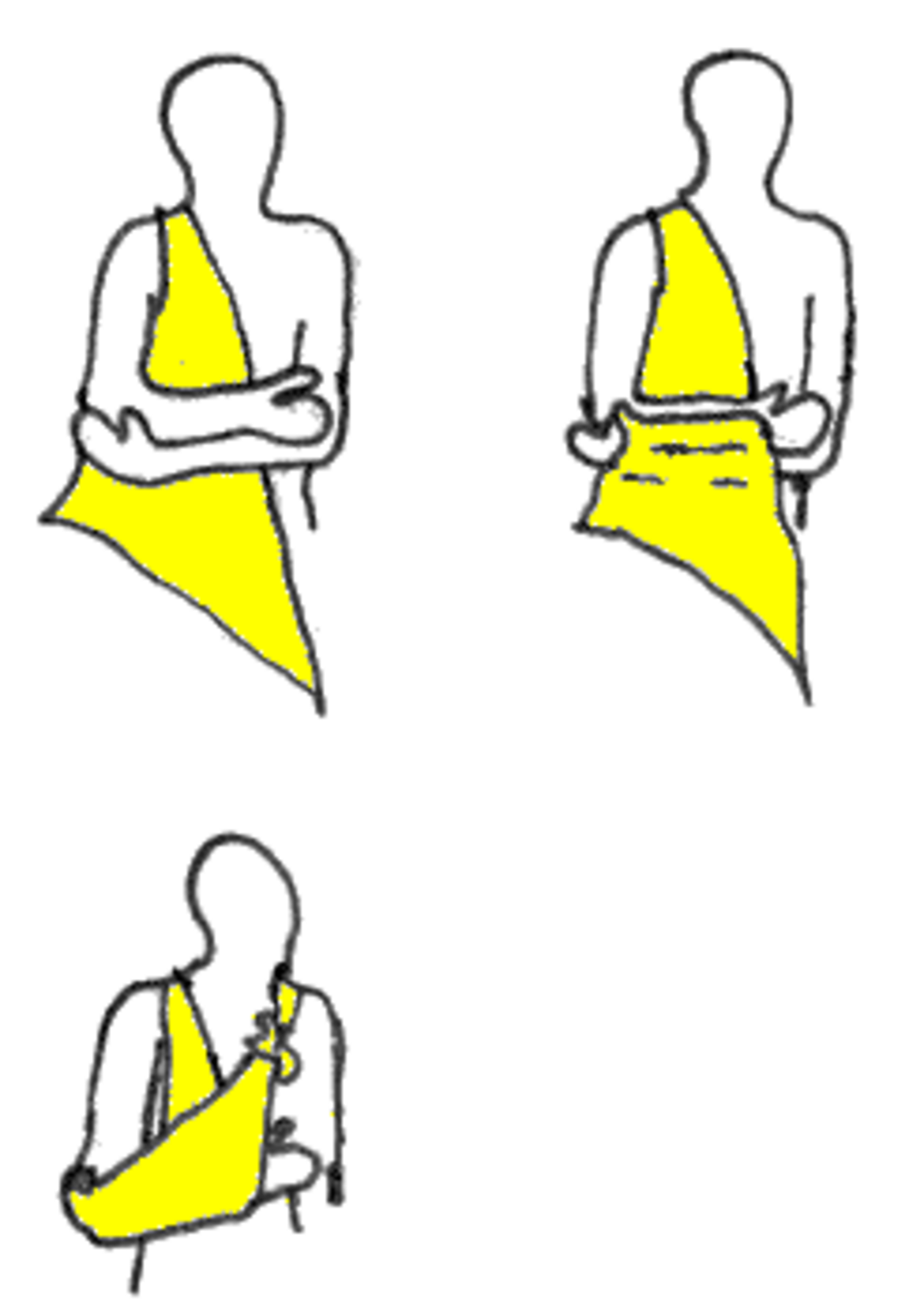 Avant examen médical, par exemple en prompt secours, il faut utiliser une pièce de tissus en forme de triangle rectangle d'environ un mètre de côté. En effet, il ne suffit pas de soulager que le poignet mais tout l'avant-bras.