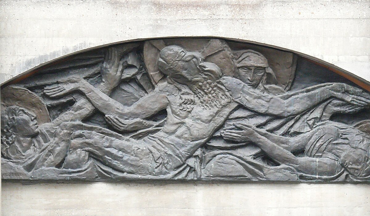 Au-dessus de la porte d'entrée, le bas-relief est une pietà d'Antoine Bourdelle qui a été mise en place et inaugurée le 19 septembre 1999.