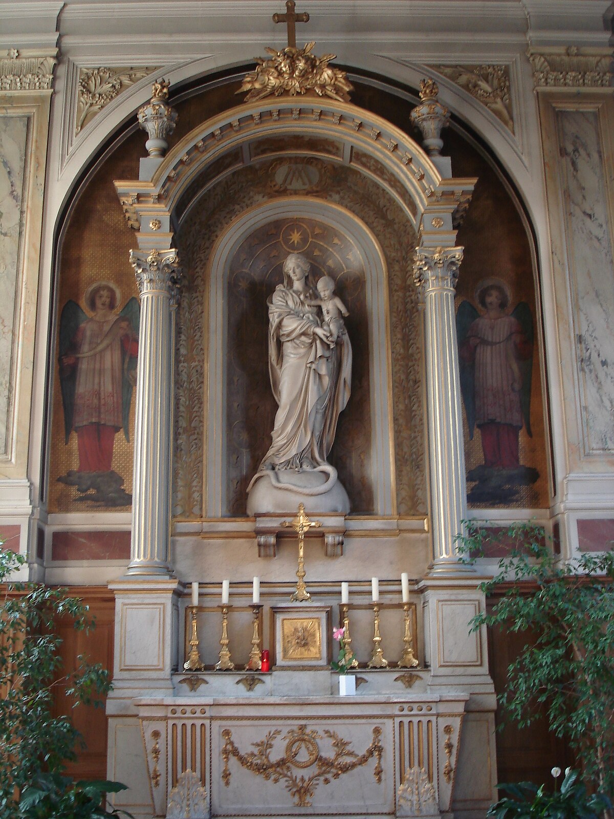 La décoration de la chapelle de la Vierge est confiée en 1868 à Auguste-Barthélemy Glaize, élève d'Achille et d'Eugène Devéria.
