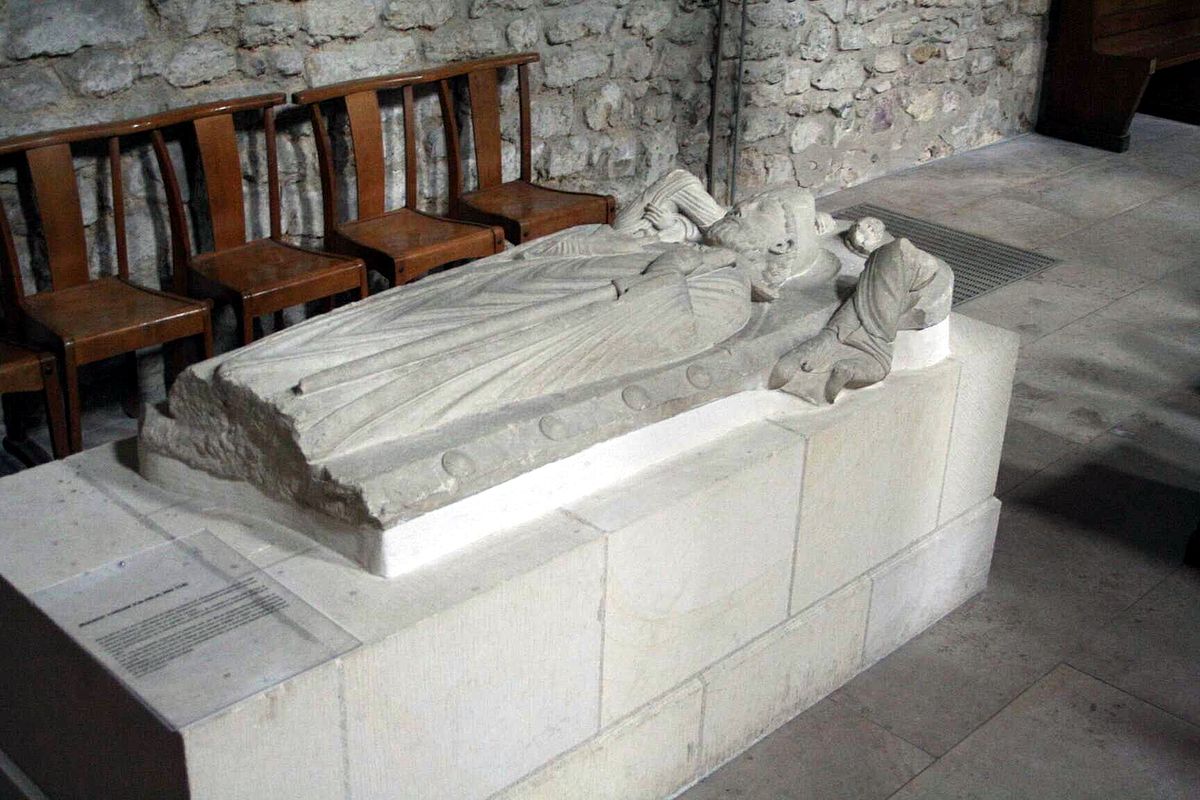 La stèle funéraire de Thomas de Brienne, prieur de Gassicourt, mort en 1278, en pierre.