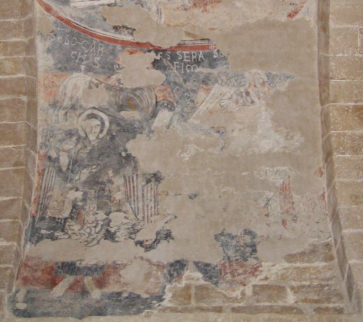 À l'origine, l'Épiphanie était également représentée sur le mur du chevet. Après le percement d'une fenêtre vers le XIVe ou le XVe siècle, l'Adoration des mages a été presque totalement détruite : il ne nous en reste que le visage de la Vierge, une étoile et la tête de Balthazar couverte par un bonnet.