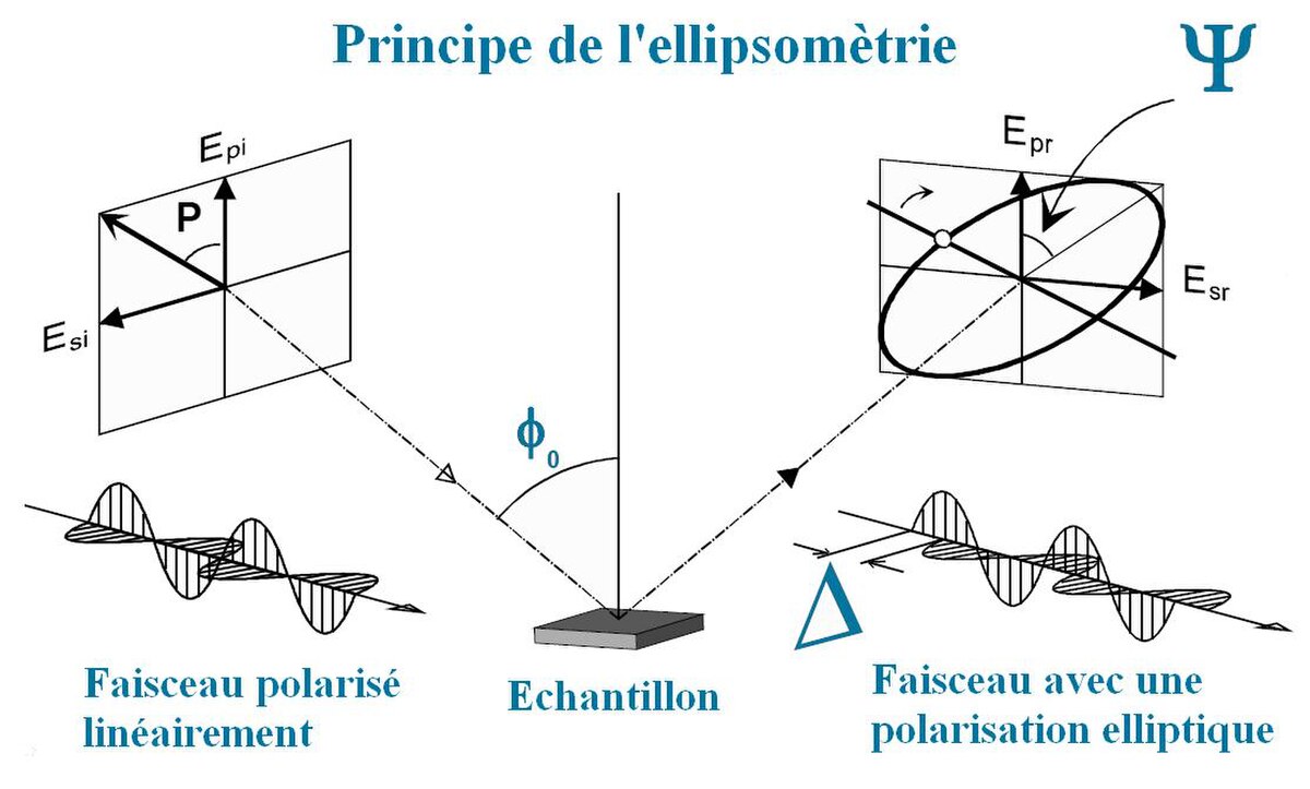 Considérons une surface et un faisceau incident de lumière polarisée. Une partie du faisceau est transmis ou absorbé à travers la surface, une autre est réfléchie. Dans les deux cas, l'état de polarisation du faisceau a changé. L'ellipsométrie est une technique qui mesure le changement de polarisation dû à la réflexion (ellipsométrie par réflexion) ou à la transmission (ellipsométrie par transmission). Cette modification de l'état de polarisation de la lumière incidente dépend de la surface étudiée.