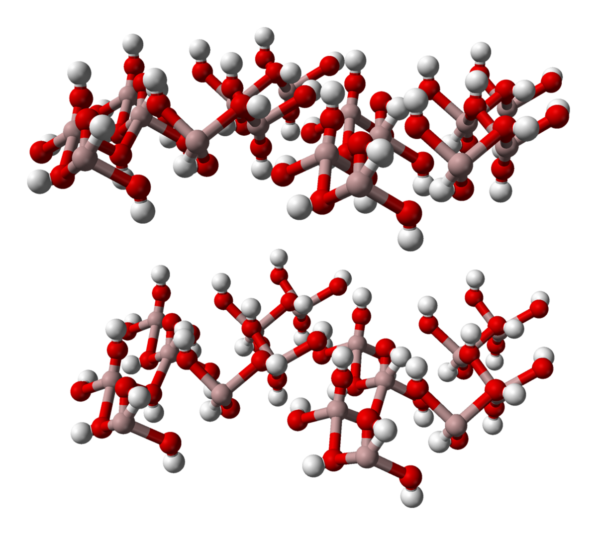 Enfin, la gibbsite est intéressante parce qu'elle est souvent rencontrée comme sous-partie de la structure d'autres minéraux. Ainsi les feuillets neutres d'hydroxyde d'aluminium se rencontrent entre des feuillets de silice dans des minéraux argileux comme l'illite, la kaolinite, la montmorillonite. Ils sont identiques aux feuillets rencontrés dans la gibbsite.