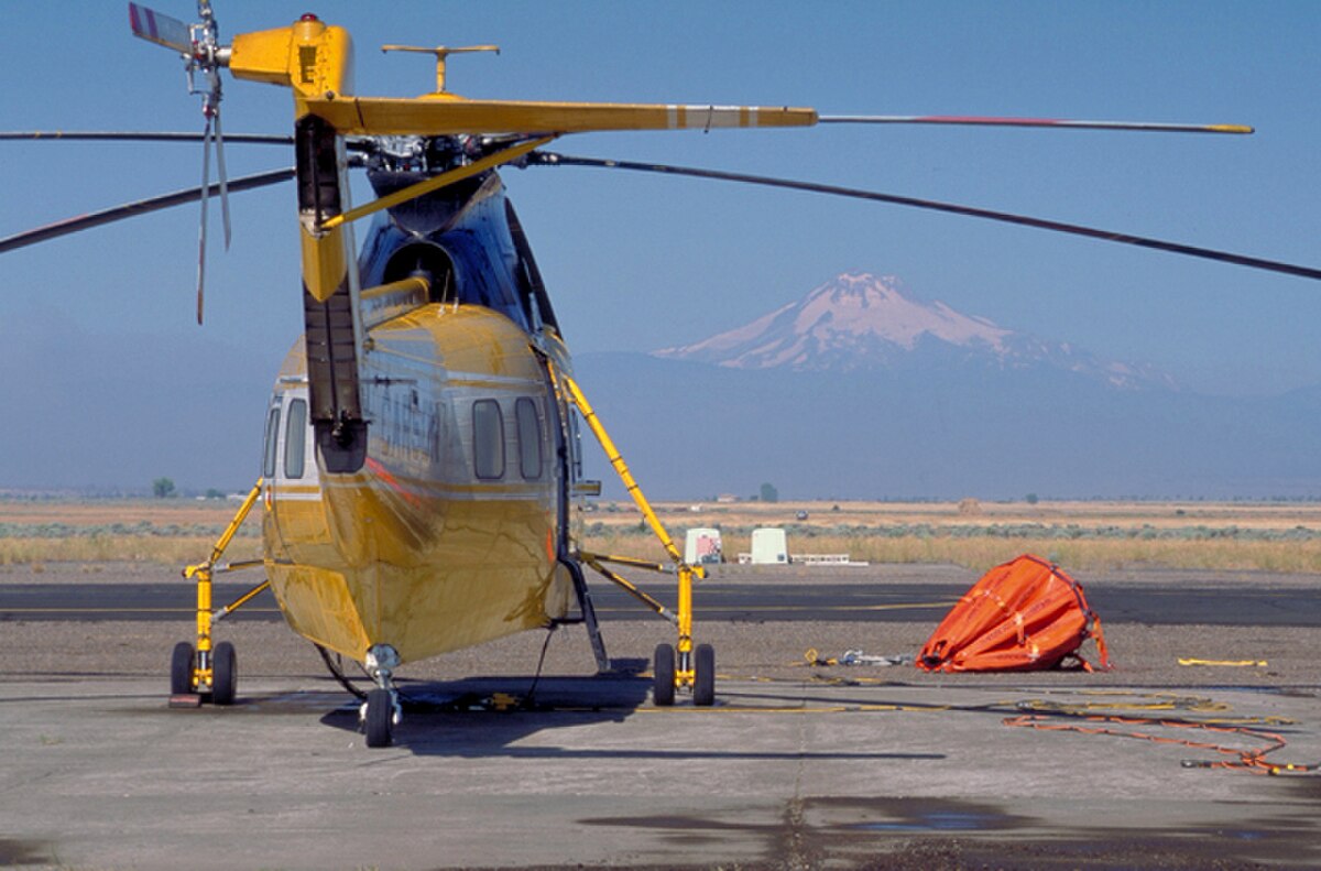Skycrane CH-54 du fabricant Air-Crane (recyclage du Sikorsky S64 utilisé lors de la guerre du Viêt Nam) : réservoir de 9 000 litres, écopage ou pompage en 1 minute environ, vitesse de 100 à 110 nœuds (180 à 205 km/h), autonomie d'environ ½ h ; il en existe 21 dans le monde, tous possédés par la société Erickson. Mais la Société EVERGREEN en opère quelques uns.