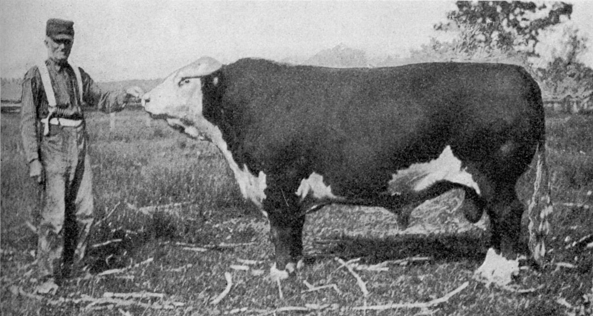 Cette race, sélectionnée depuis longtemps pour sa production bouchère, a donné des reproducteurs très lourds. En 1839, le taureau hereford "cotmore" pesait 1770 kg, mais au XXe siècle, la sélection a porté sur des animaux plus légers mais plus efficaces. (bonne vitesse de croissance, moins de gras, plus de morceaux nobles...). Le premier livre généalogique de cette race fut publié à Hereford (Angleterre) en 1846.