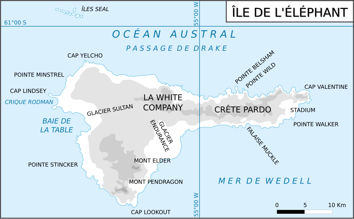 L'Île de l'Éléphant est une île montagneuse située au nord-ouest de l'Antarctique. Elle fait partie de l'archipel des Îles Shetland du Sud. Sa position géographique est , à 1300 km au sud-ouest de la Géorgie du Sud. Elle tient son nom de la grande colonie d'éléphants de mer qui la peuplaient lorsqu'elle fut nommée pour la première fois en 1821 par le chasseur à la baleine britannique George Powell. Elle fut découverte par Edward Bransfield en 1820.