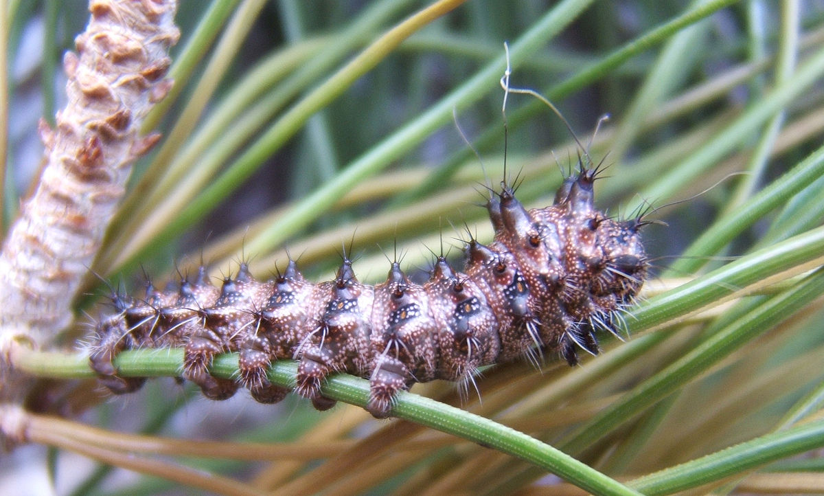 La larve se développe en six stades, durant 29 à 45 jours, des chenilles se nourrissant du mois de juin au début du mois d'août. Il semble que certains clones ou écotypes de pins puissent nuire au développement de ses chenilles.