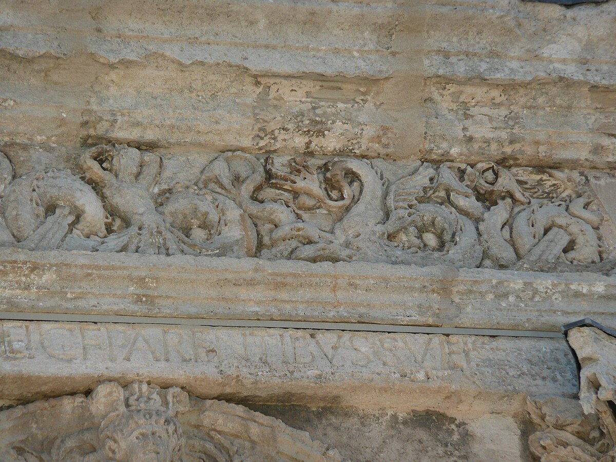 Quatre piliers disposés en carré supportent de arcades, et forment ainsi un tétrapyle (arc de triomphe à quatre ouvertures). Le sommet de cette structure est décoré d’une frise de créatures marines entourant un disque solaire central, sur chaque face Est, Sud et Ouest, la face Nord étant dépourvue de disque solaire.