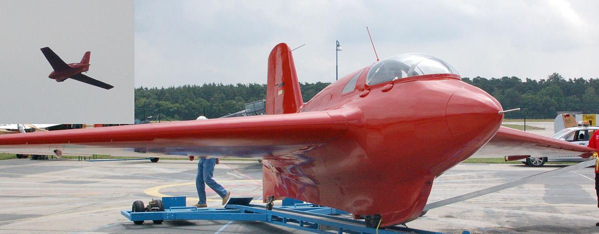 Planeur Messerschmitt Me 163 (en médaillon : Manching juillet 2006) |