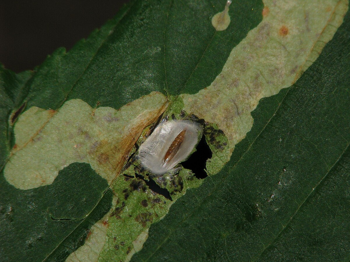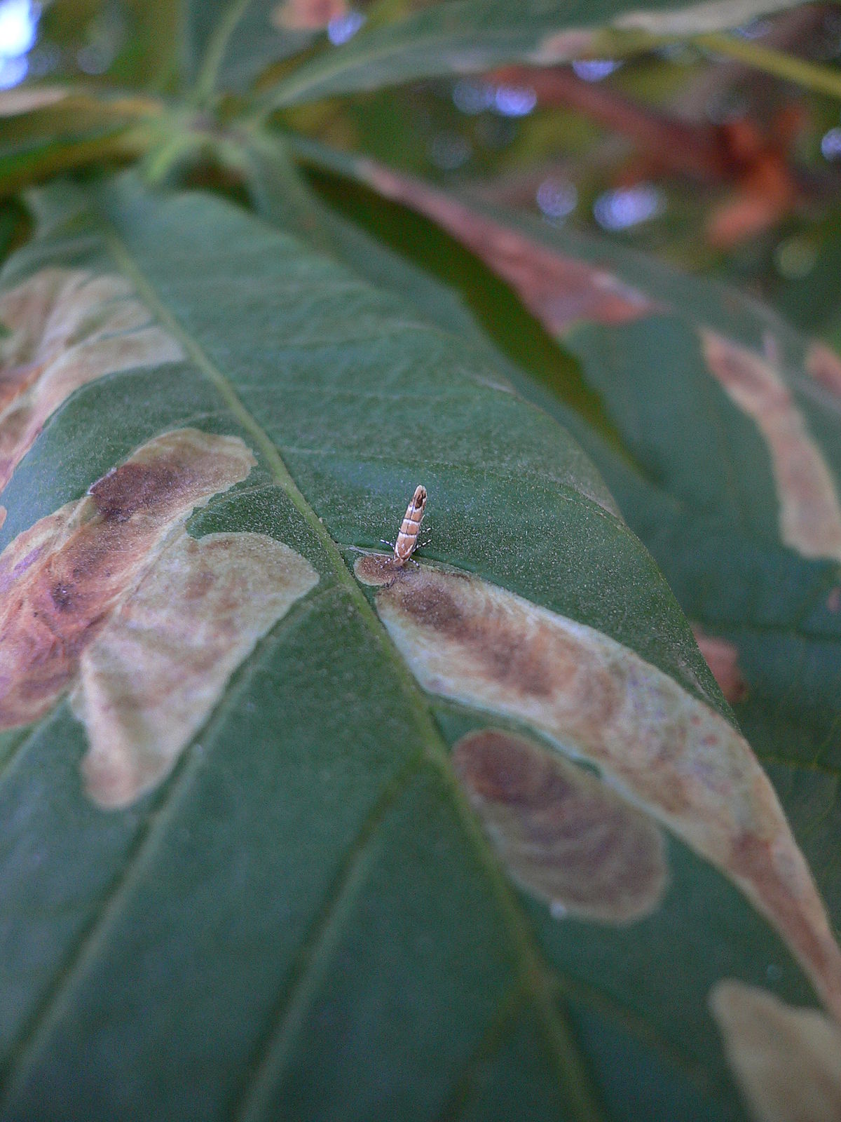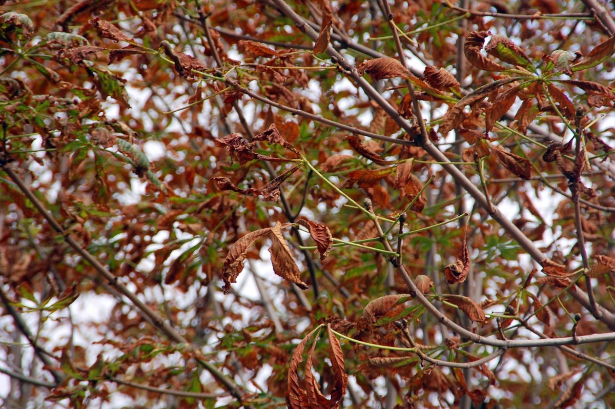 Selon le degré d’infestation, les mines peuvent fusionner et recouvrir toute la surface des feuilles. Dans les cas extrêmes, plusieurs centaines de mines peuvent être observées sur une même feuille. Un phénomène de compétition intraspécifique pour l’espace et la nourriture dans les feuilles apparaît alors : c’est le plus important facteur de mortalité en cours de saison. L’ensemble du houppier prend alors une couleur brune, et on observe la chute prématurée des feuilles dès le milieu de l’été. La nuisibilité de C. ohridella est avant tout esthétique. Une défoliation de 100 % en plein été limite l’ombre dans les parcs et jardins, et surtout provoque une inquiétude du public qui cherche des réponses auprès des instances locales.