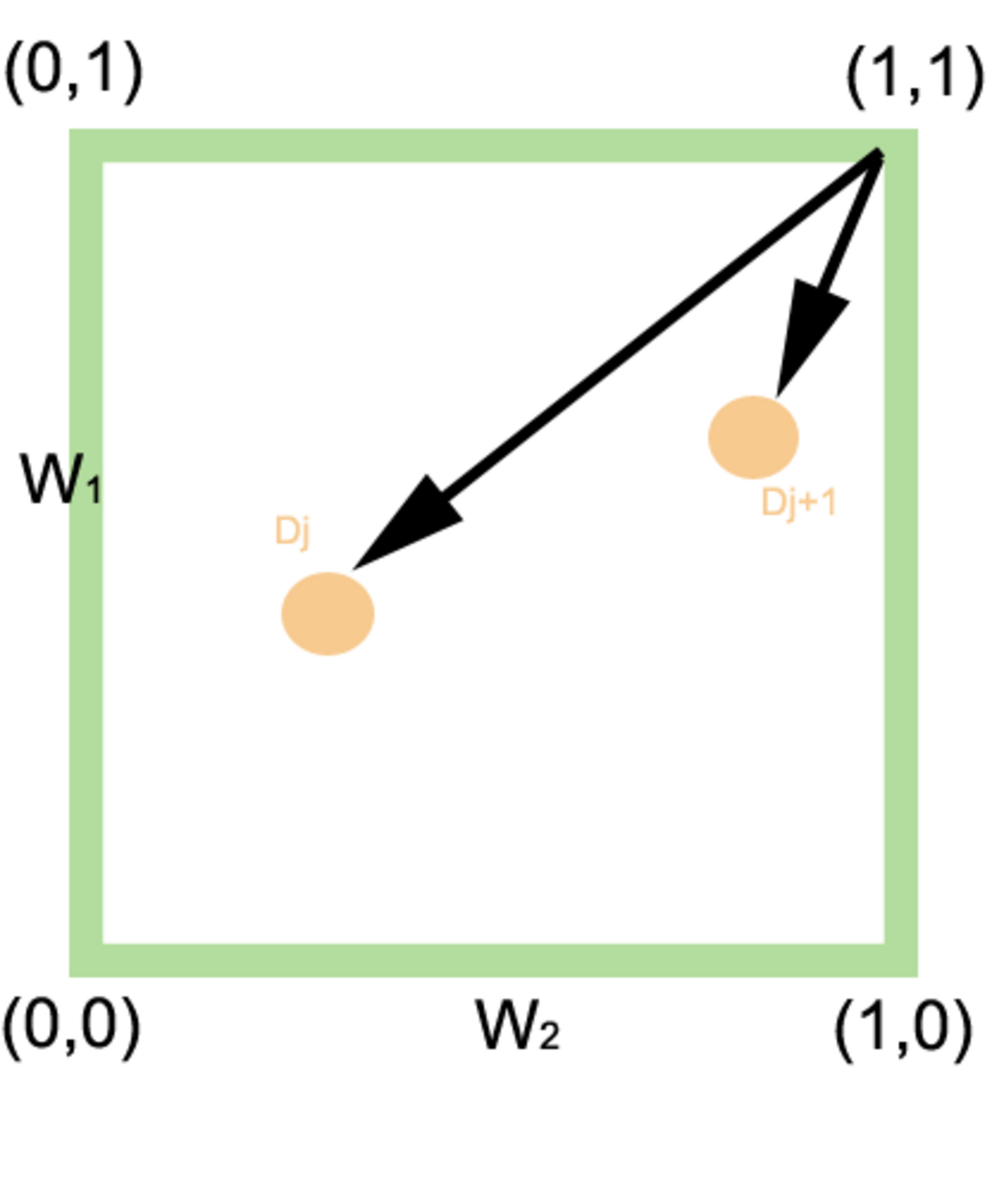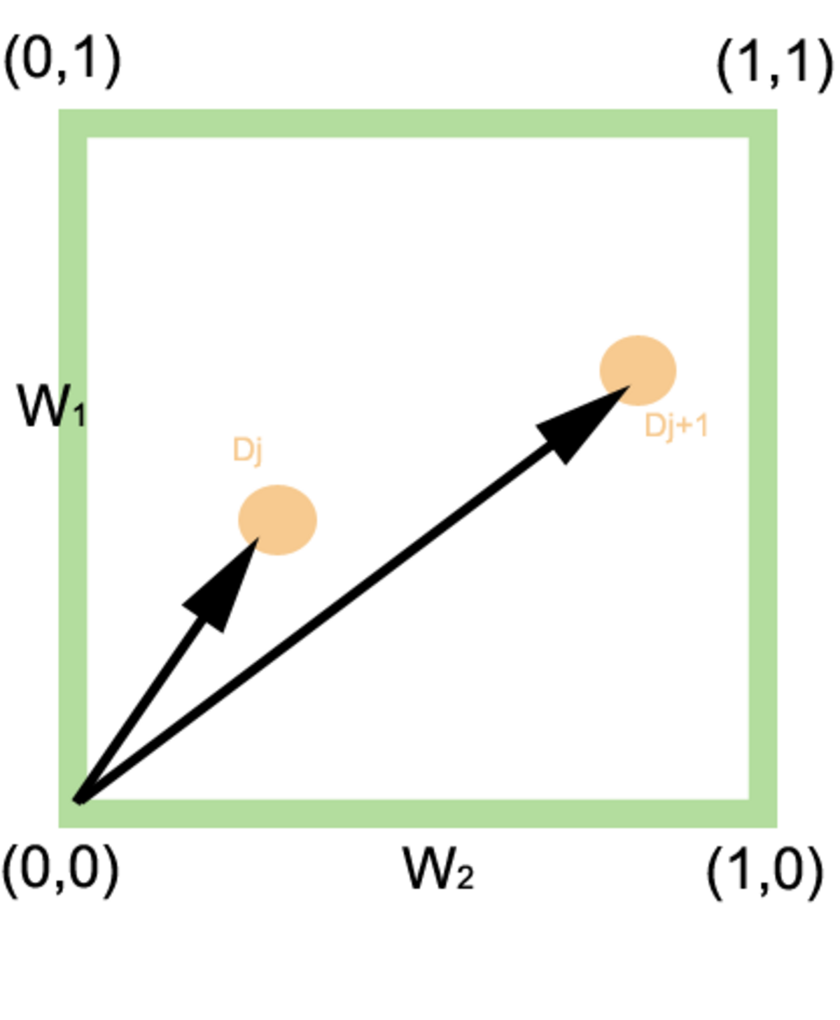 Dans le cas d'une requête comportant deux termes, une condition logique de type ET est alors représentée par la distance entre le document est les coordonnées « idéales » (1,1) tandis qu'une condition de type OU est calculée par la distance du document à l'origine. Cette définition peut être généralisée à un nombre quelconque de termes.