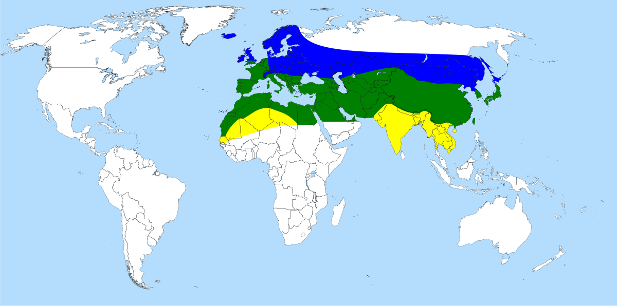 Son habitat naturel se trouve dans l'hémisphère nord entre l'Espagne et le Japon. Cet insecte migrateur, peut se rencontrer presque partout dans l'hémisphère en été, mais il réside uniquement dans les climats tempérés les plus chauds (Espagne, Portugal, Italie, Turquie, Afrique du Nord). En effet il survit rarement à l'hiver aux latitudes plus au nord (comme au nord des Alpes en Europe, ou au nord du Caucase en Russie, etc.).