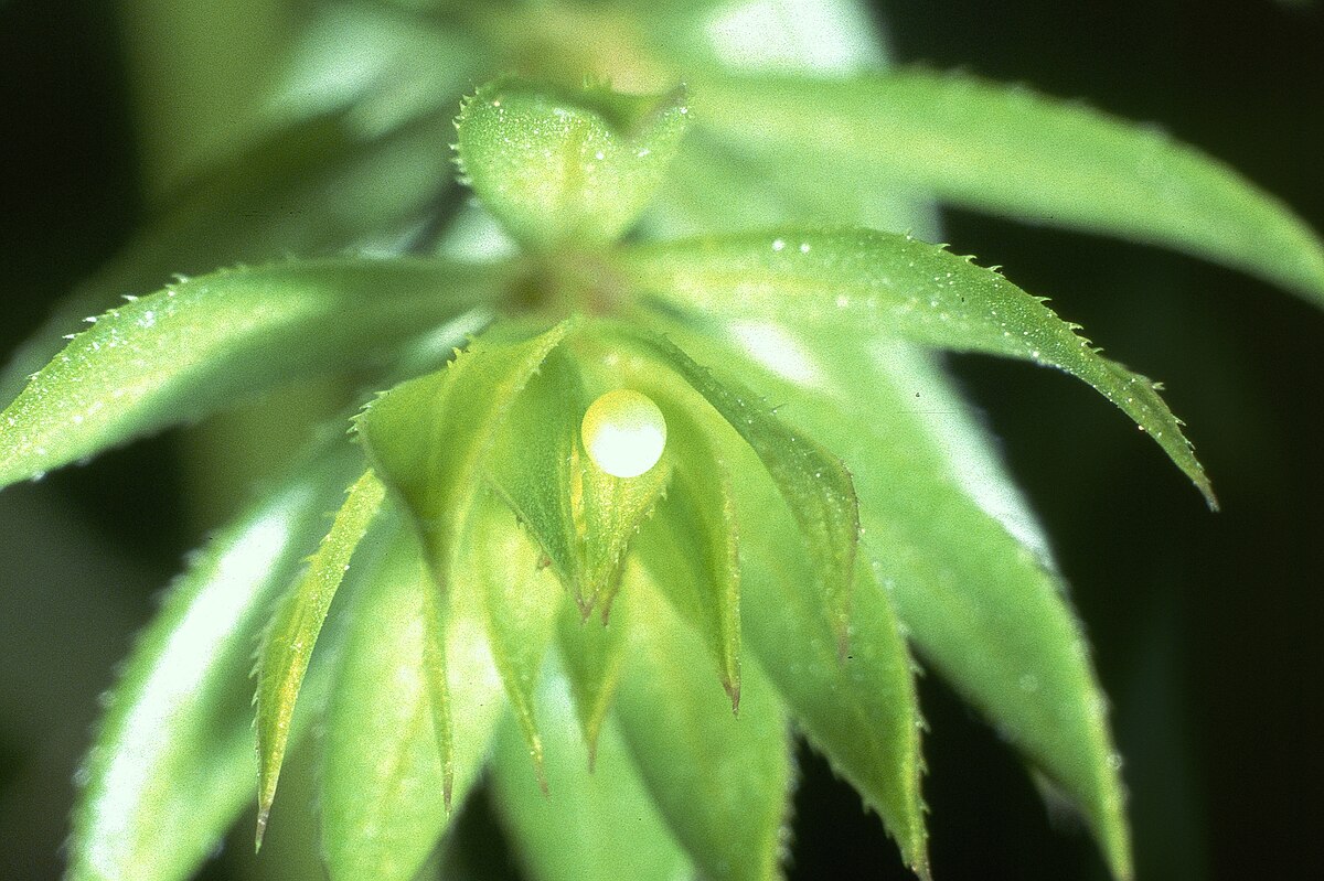 | Un œuf de Moro sphinx pondu sur gaillet,0,5mm de diamètre environ |