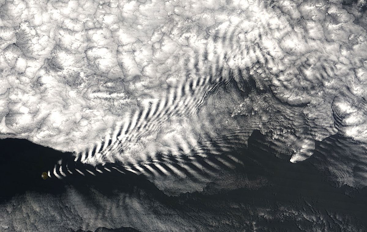 Dans l'atmosphère, la densité de l'air varie avec la hauteur au-dessus de la surface terrestre. Il est donc difficile de noter des vagues à la surface de ce fluide mais on peut en créer des oscillations verticales en perturbant la stratification interne de densité. Celles-ci sont un important mécanisme de transfert de mouvement entre les basses couches de l'atmosphère (troposphère) et celles supérieures (mésosphère).