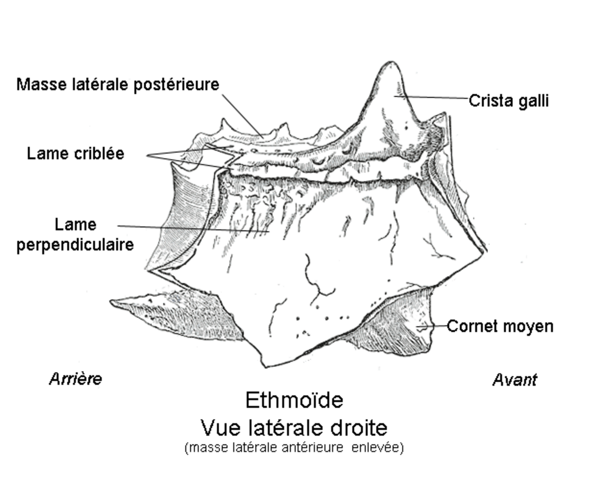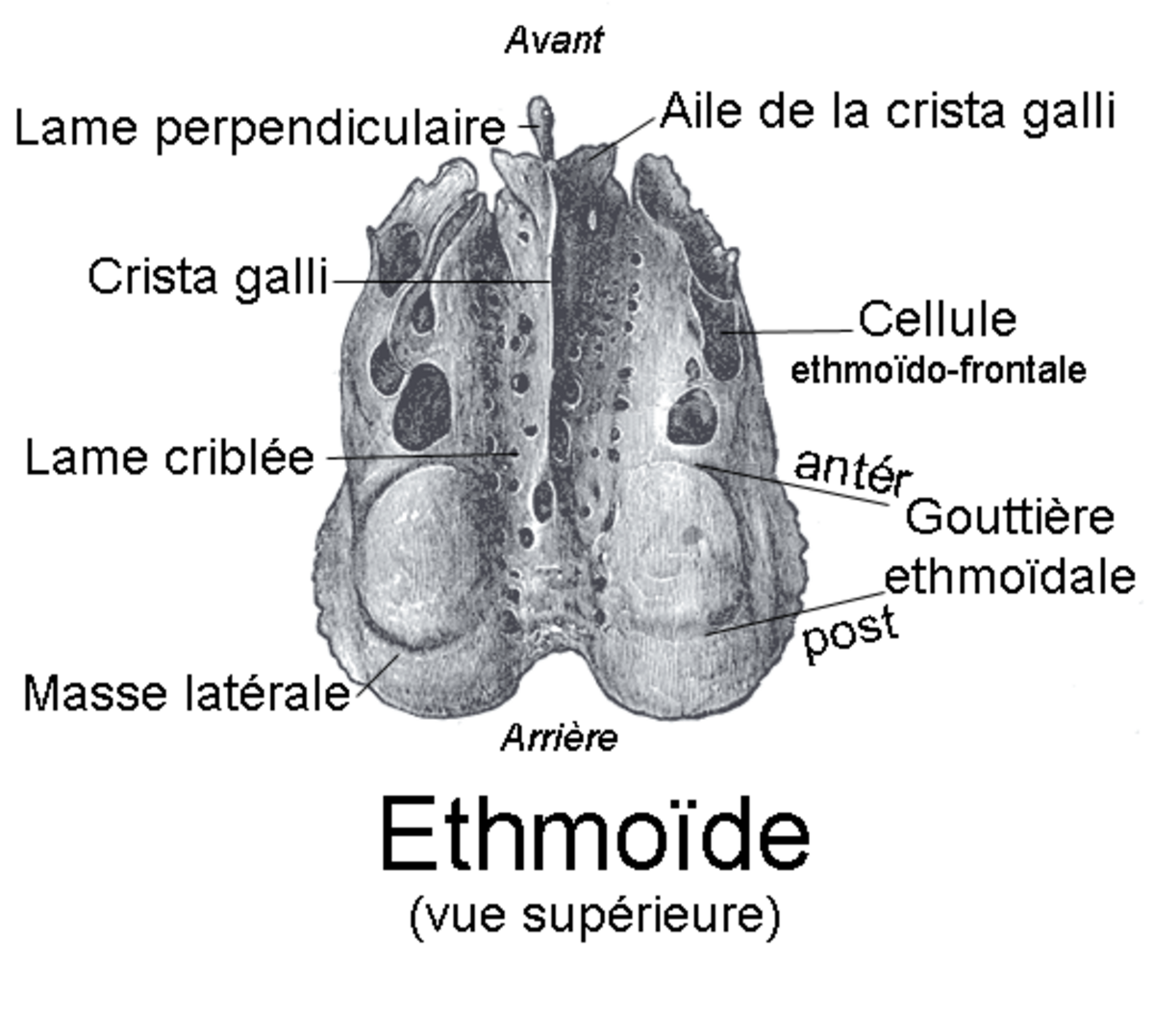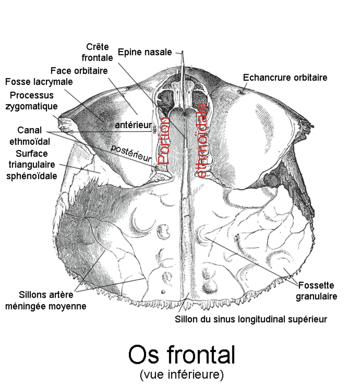 Face supérieure ou endocrânienne: s'articule avec la partie ethmoïdale de la face exocrânienne de l'os frontal