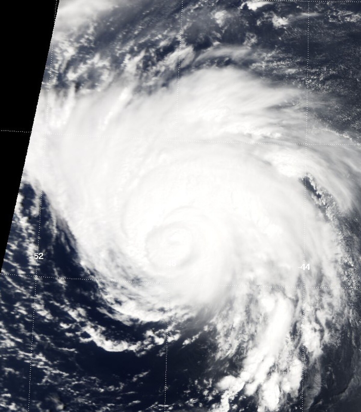 Née le 16 septembre d'une perturbation à proximité des Îles du Cap-Vert, la dépression tropicale n° 12 évolue le lendemain en tempête tropicale, puis le 18 en ouragan, le huitième de la saison cyclonique. Il ne menace aucune terre habitée et prend une trajectoire vers le nord-ouest puis le nord. Ouragan majeur de classe 3 le 19, il évolue le même jour en classe 4, le quatrième de la saison 2004. Il reste ouragan majeur jusqu'au 22, par 27° Nord, puis encore temporairement le 23. Atteignant des latitudes très élevées, il perd ses caractéristiques tropicales le 24 septembre.