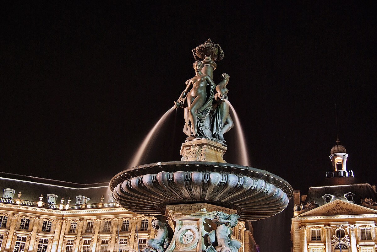 En 1828, sous la Restauration, la ville élève une modeste fontaine, en forme de colonne de marbre rose surmontée d'un chapiteau blanc et d'un globe, à l'emplacement de la statue équestre disparue à la Révolution. En 1869, elle est remplacée par l'actuelle fontaine des Trois Grâces représentant Aglaé, Euphrosyne et Thalie, les filles de Zeus, dessinée par Louis Visconti et coulée par Gumery et Jouandot. En octobre 2009, une campagne de sensibilisation au dépistage du cancer du sein utilise comme vecteur, les 3 grâces de la place de la bourse, enrubannées de rose et baignant dans une eau rouge.