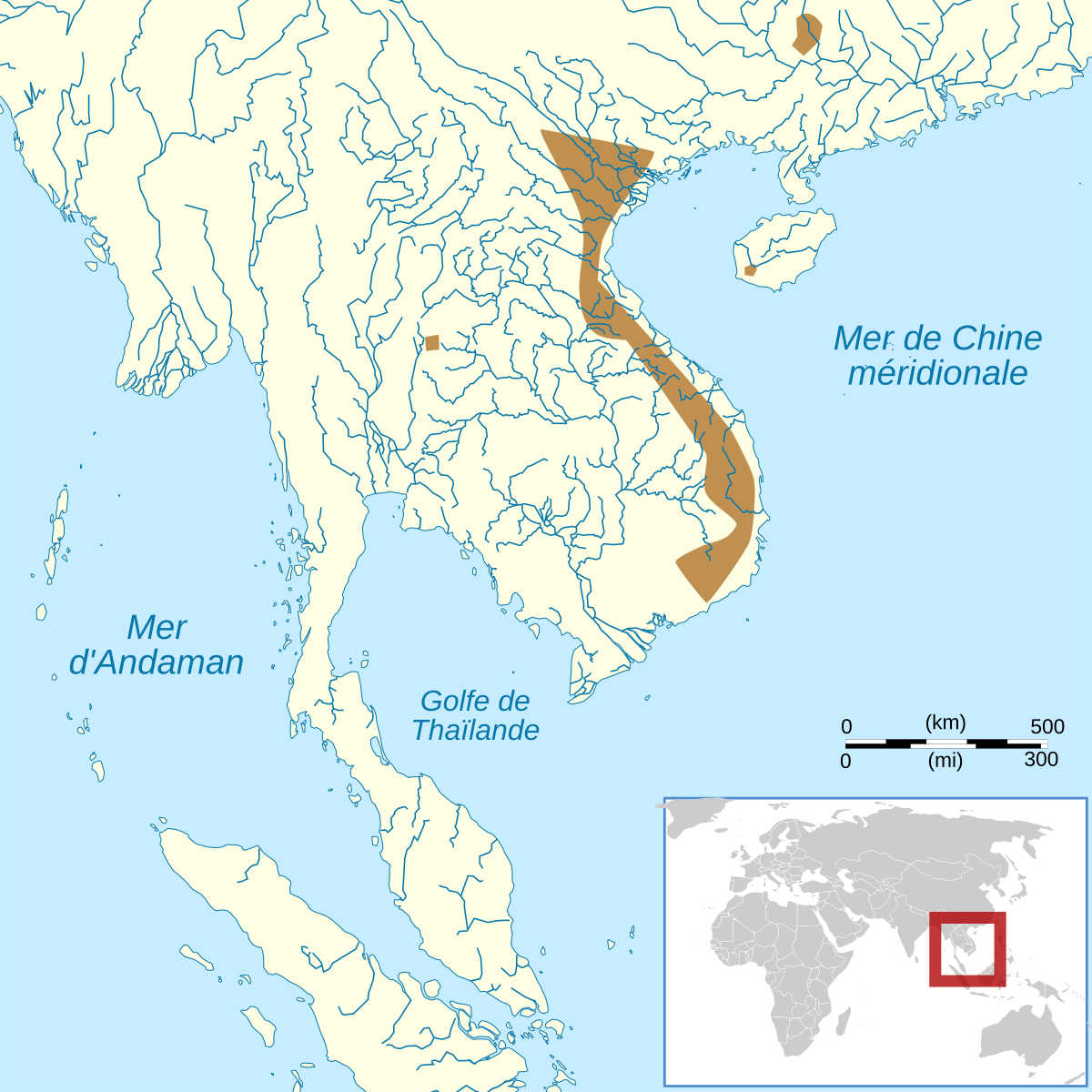 Cette espèce est endémique du sud-est de l'Asie, elle se rencontre :