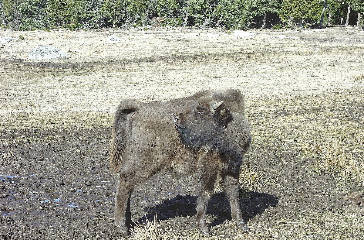 Les bisons se nourrissent dans le milieu, y compris en écorçant les arbres, mais modérément, ce qui permet aux arbres de cicatriser (à la différence du bison d'Amérique qui tue les arbres). Étant donnée la superficie du parc, un complément alimentaire est fourni aux bisons sous forme de foin, notamment en hiver.