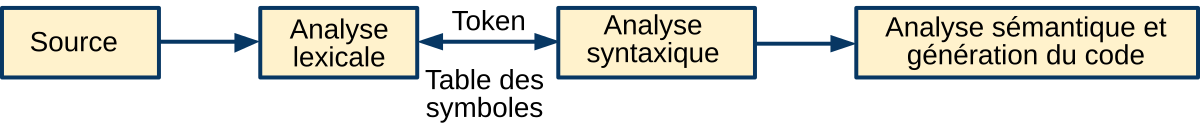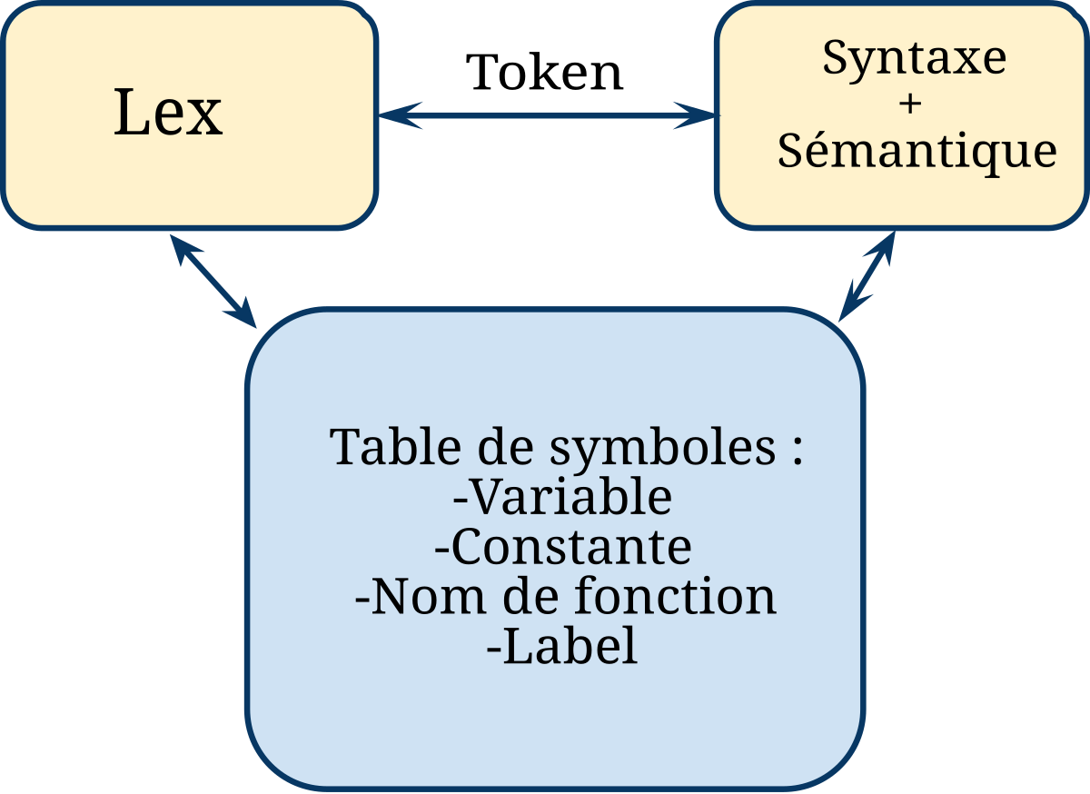 Put Symbole Get symbole (vérification de la cohérence du type) Begin scope (début de la portée) End scope (fin de la portée) Ainsi on peut modéliser la table de symboles comme une pile, cela permet lors de la lecture du programme de conserver la structure de portée de ce programme informatique.