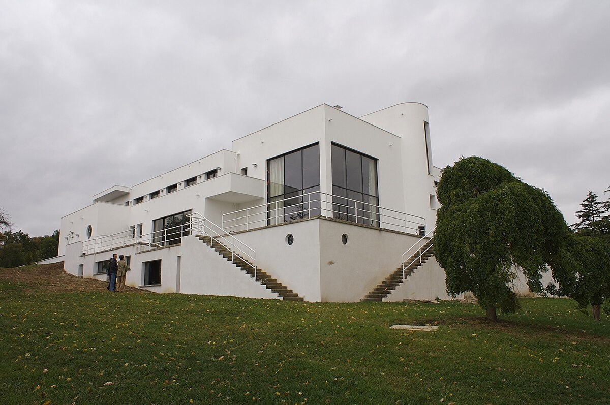 C'est une composition géométrique aux lignes très épurées. Cette construction blanche, en béton, aux formes cubiques a des proportions généreuses : 800 m² de surface habitable. Le hall, pièce principale de la villa, offre sept mètres de hauteur sous plafond et deux grandes baies vitrées qui montent jusqu'au plafond. La terrasse supérieure donne un panorama imprenable sur la vallée de la Seine.