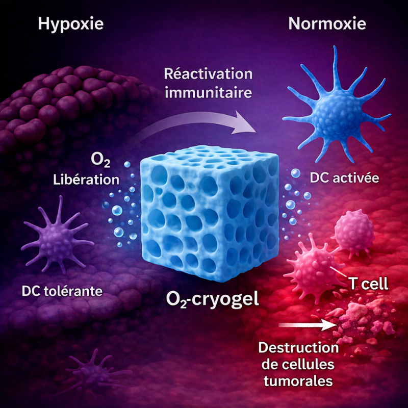 Cientistas conseguiram contrariar este fenómeno desenvolvendo um biomaterial inovador capaz de fornecer oxigénio dentro do tumor e restaurar ali a atividade antitumoral das células imunitárias. Estes resultados, publicados na revista Cell Biomaterials, abrem novas perspetivas em oncologia.